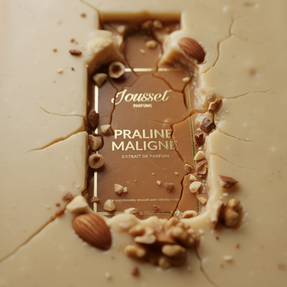 Praline Maligne is temptation in motion. A dazzling fusion of crunchy praline and melting fondant, evoking the pleasure of biting into a silky, nutty confection that melts on the tongue.